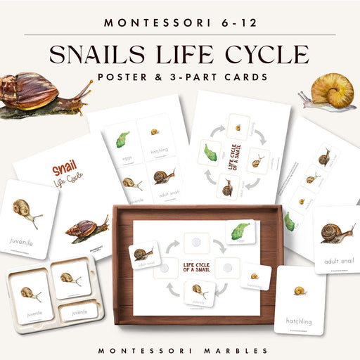 View full detailsEnseña el ciclo de vida del caracol con tarjetas Montessori de tres partes completamente en español. Cuatro etapas de desarrollo con tarjetas de co...
